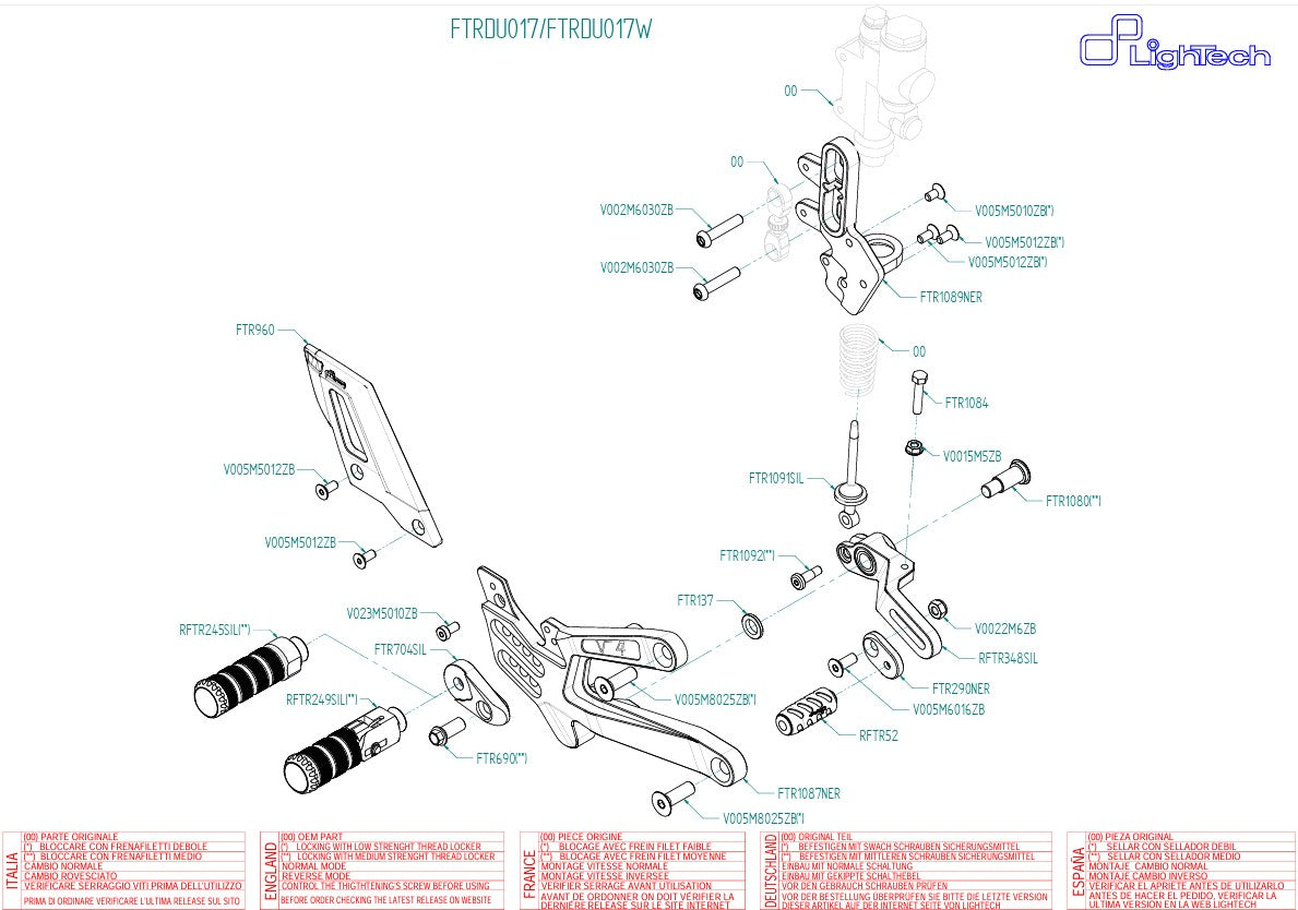 Yeni Ducati Panigale V4 / S / R (2025-2026 model yılı) için LighTech FTRDU017/W ayak pegleri, en yüksek hassasiyet, işçilik kalitesi ve sportif ergonomiye değer veren zorlu sürücüler için geliştirilmiştir.