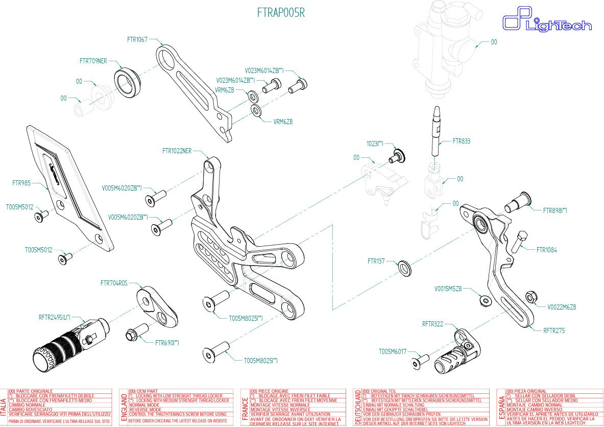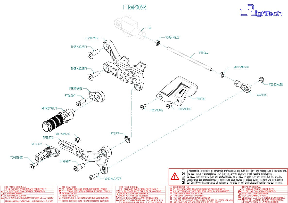 LighTech ayak peg seti R, Aprilia RSV4 / RF / RR / 1100 Factory (2017–2026 yılları) için, sokak ve yarış kullanımında zor beğenen sürücüler için mükemmel bir seçimdir.