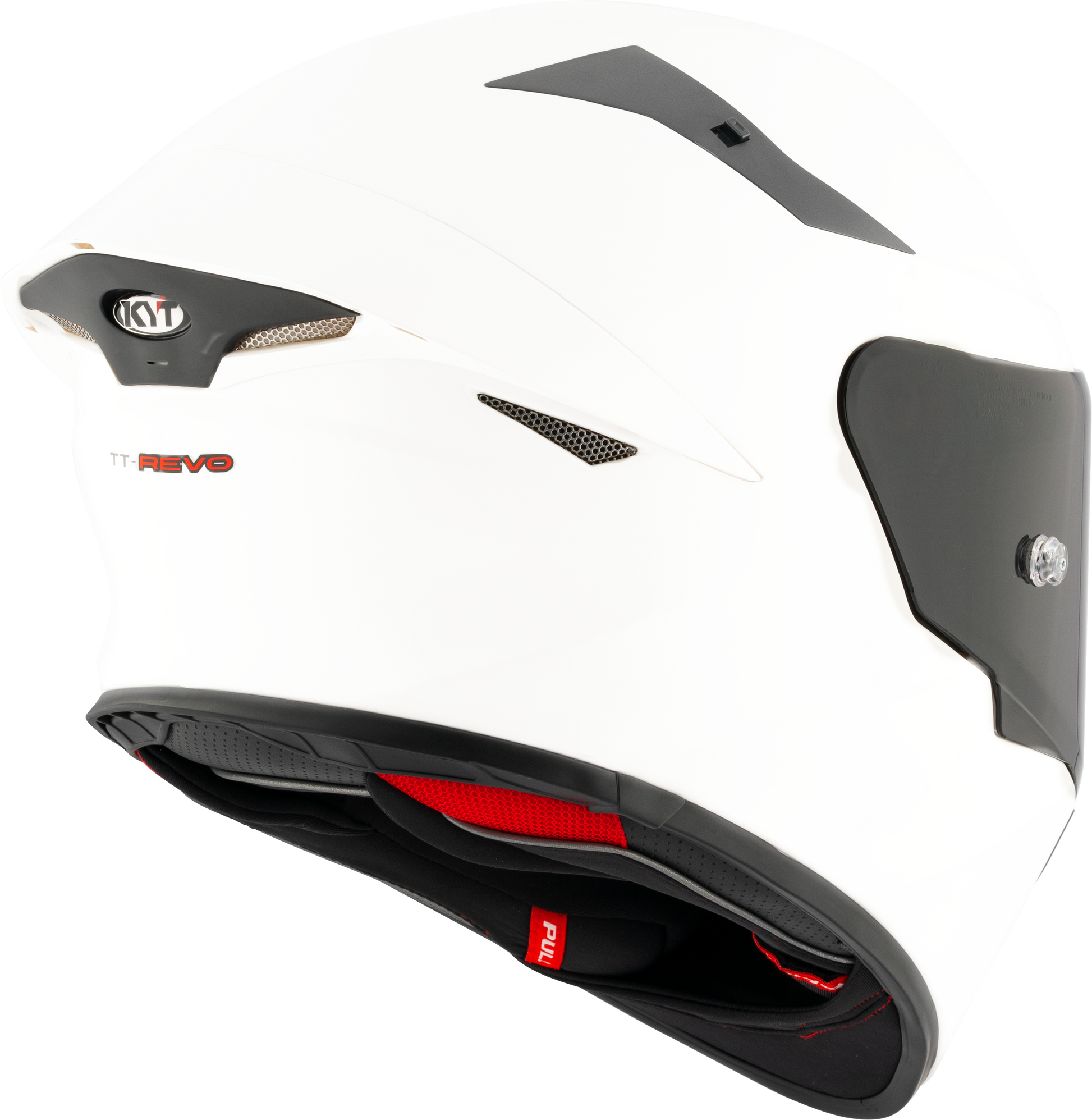 KYT TT-Revo Kaskası beyaz parlak, UNECE 22-06 sertifikasını karşılamaktadır, bu da onu yol trafiği için güvenli bir kask yapar. Mekanik vizör kilidi ve aerodinamik spoiler, ek güvenlik ve stabilite sağlar.