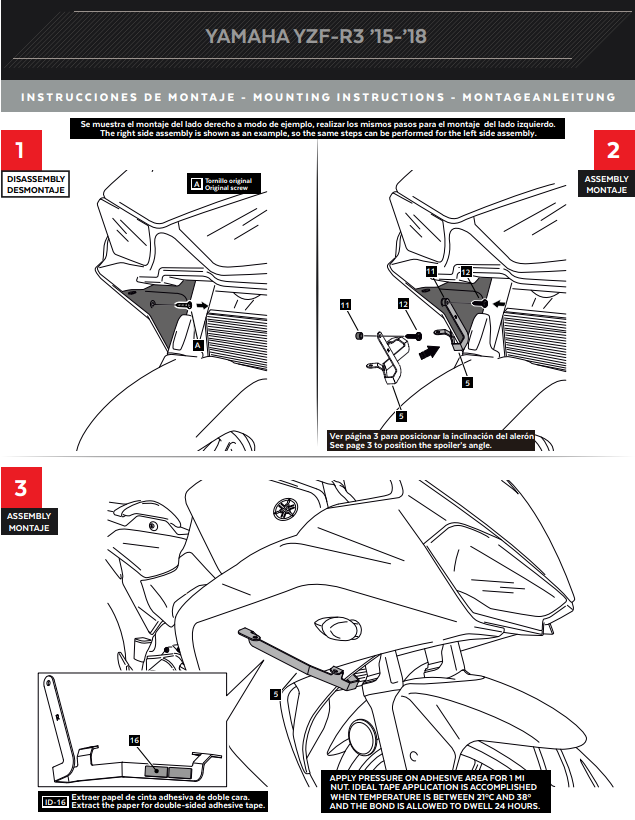 Yarış teknolojisinden yararlanın ve Puig Downforce Spor Kanatçıkları, model 3171, özel olarak Yamaha YZF-R3 (2015-2018) için geliştirilmiştir. WorldSBK'deki Kawasaki Yarış Takımı testleri ve bulgularına dayanarak, bu kanatçıklar motorunuzun stabilitesini, çekişini ve performansını artırır - hevesli sürücüler ve pist kullanımı için mükemmel.