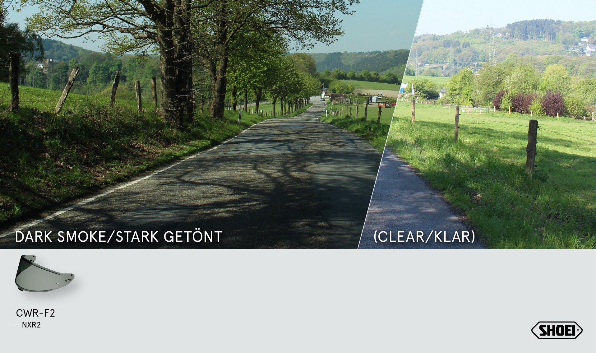 Yoğun karartılmış SHOEI CWR-F2PN vizör, aydınlık koşullar, yaz turları ve sportif kullanım için mükemmel bir seçimdir. Fonksiyonel, şık ve aerodinamik – alışılmış SHOEI hassasiyetiyle.