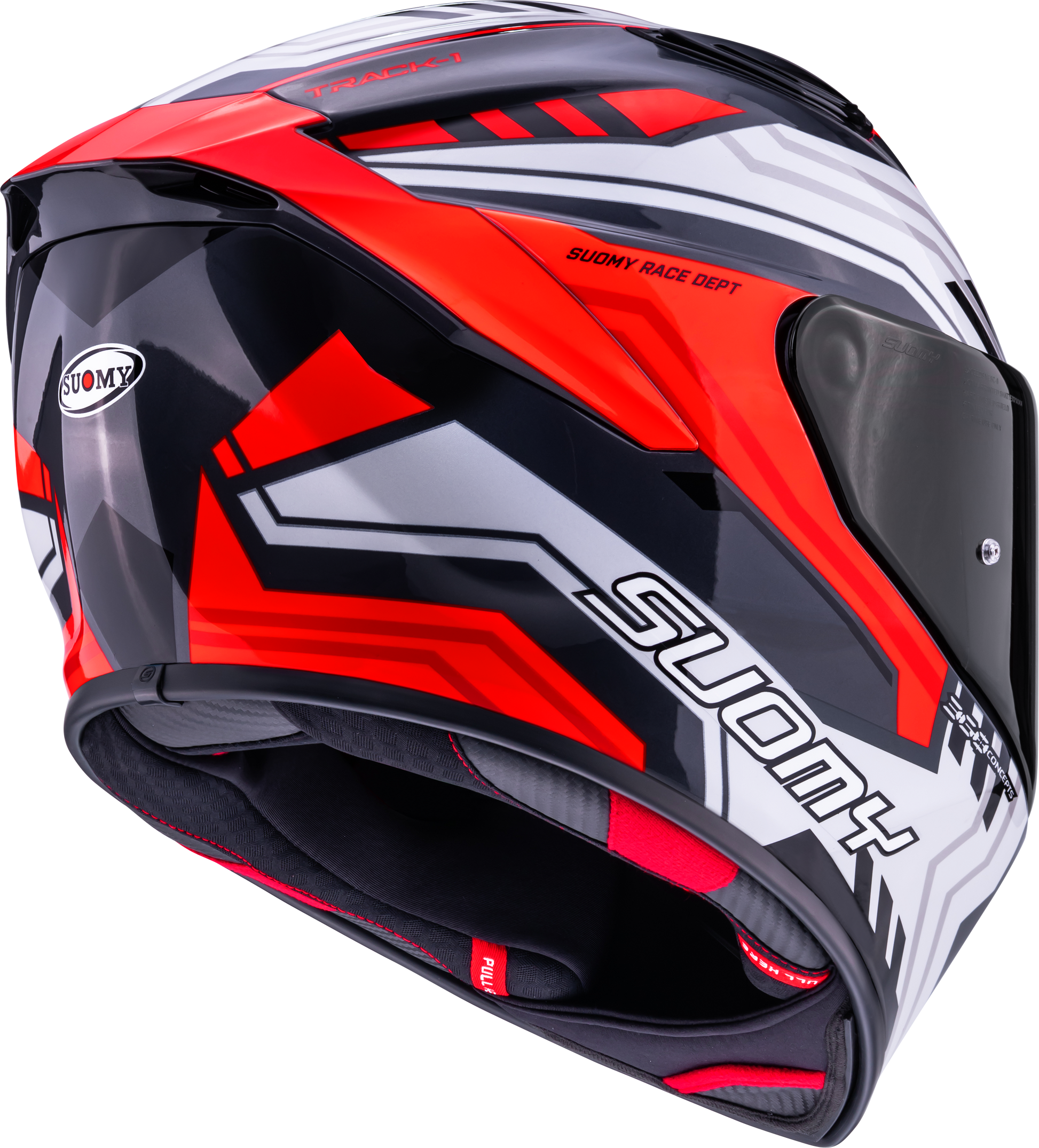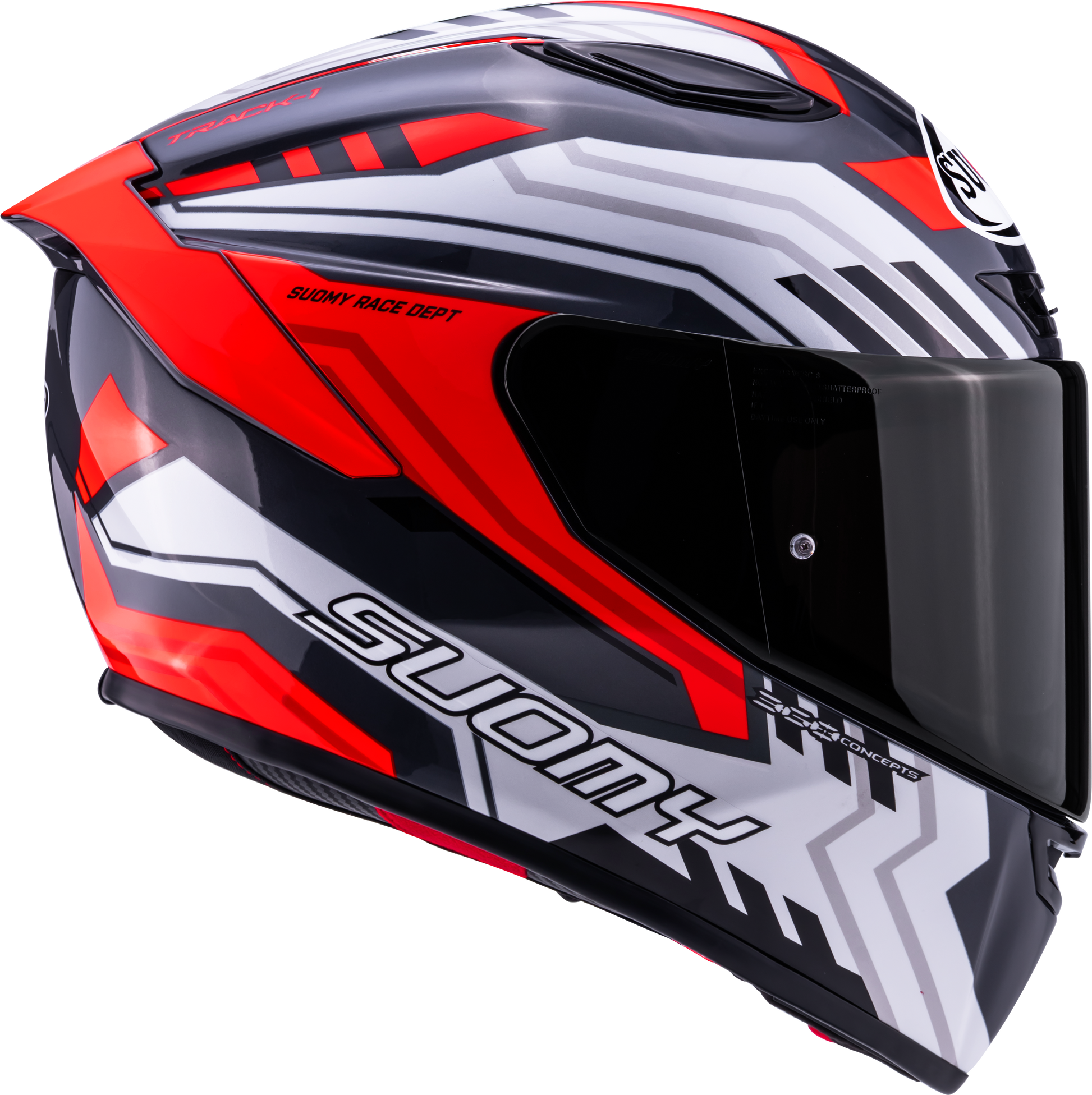 Track-1, Suomy'nin yeni spor kask nesline aittir ve en son aerodinamik, etkileyici stabilite ve maksimum konfor sunar.