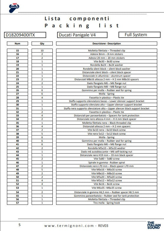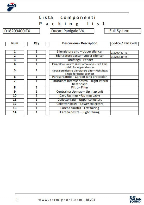 Termignoni Tam Sistem Titanyum 4USCITE Ducati Panigale V4/S (18-24) D18209401TTX