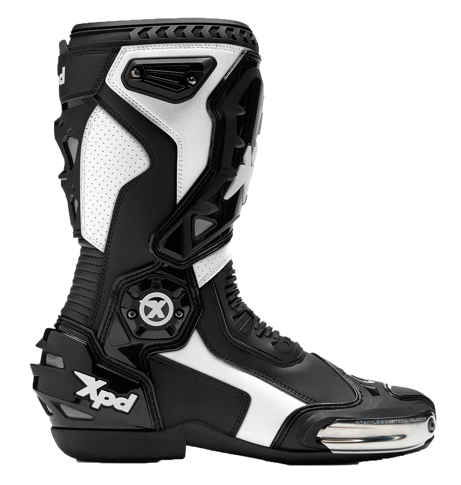 XPD XP-MODE Siyah/Beyaz, sportif bir şekilde süren ancak günlük hayatta işlevsel bir bot ihtiyacı olan motosikletçiler için tasarlanmıştır: pedal üzerinde stabil, bilek kısmında rahat, hızlı kapanan – ve birçok kilometreye dayanacak kadar sağlam. Görünüm bilinçli olarak sade ve hem deri kombine hem de tekstil kombine uyum sağlıyor. Teknik olarak XP-MODE, XPD'nin vaat ettiği gibi kalıyor: “Form İşlevi Takip Eder” – her çizgi bir amaca hizmet ediyor.