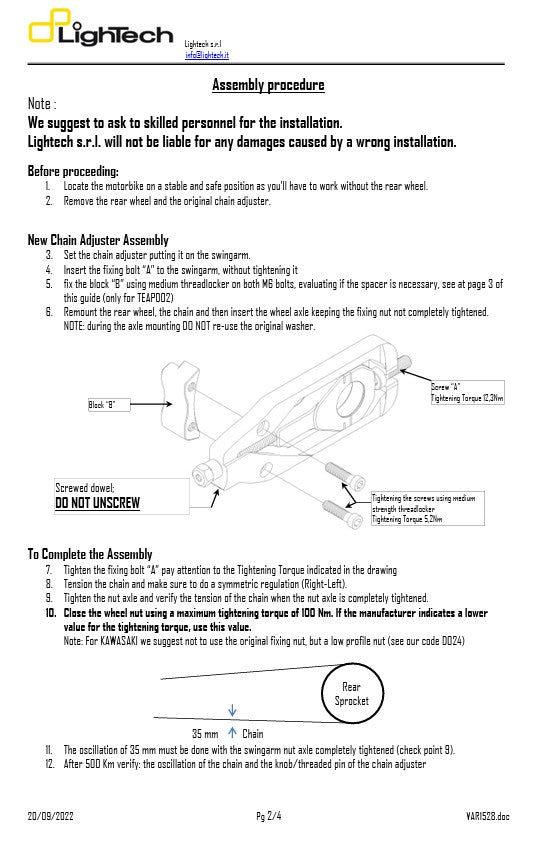 LighTech Zincir Gerginliği Yamaha YZF-R1 / M RN65 (2020–2026) için - mevcut R1'iniz için yarış teknolojisi.